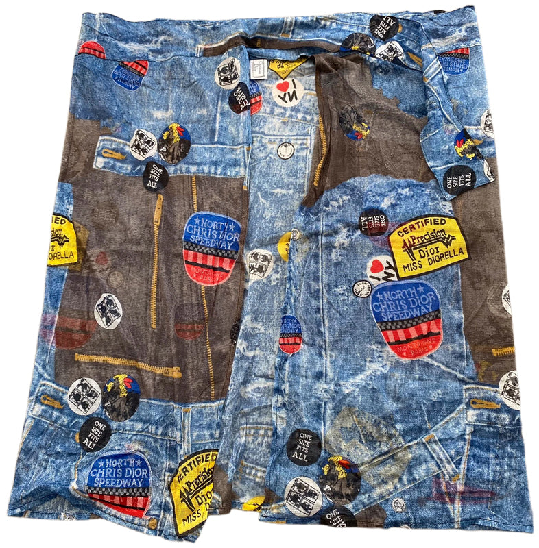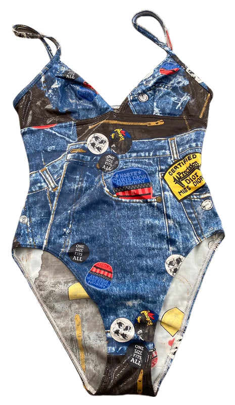 A beautiful swimsuit and pareo set, designed by John Galliano during his time at Christian Dior. Crafted from the iconic Miss Diorella denim printed fabric, featuring plenty of stretch and a body-contouring silhouette.