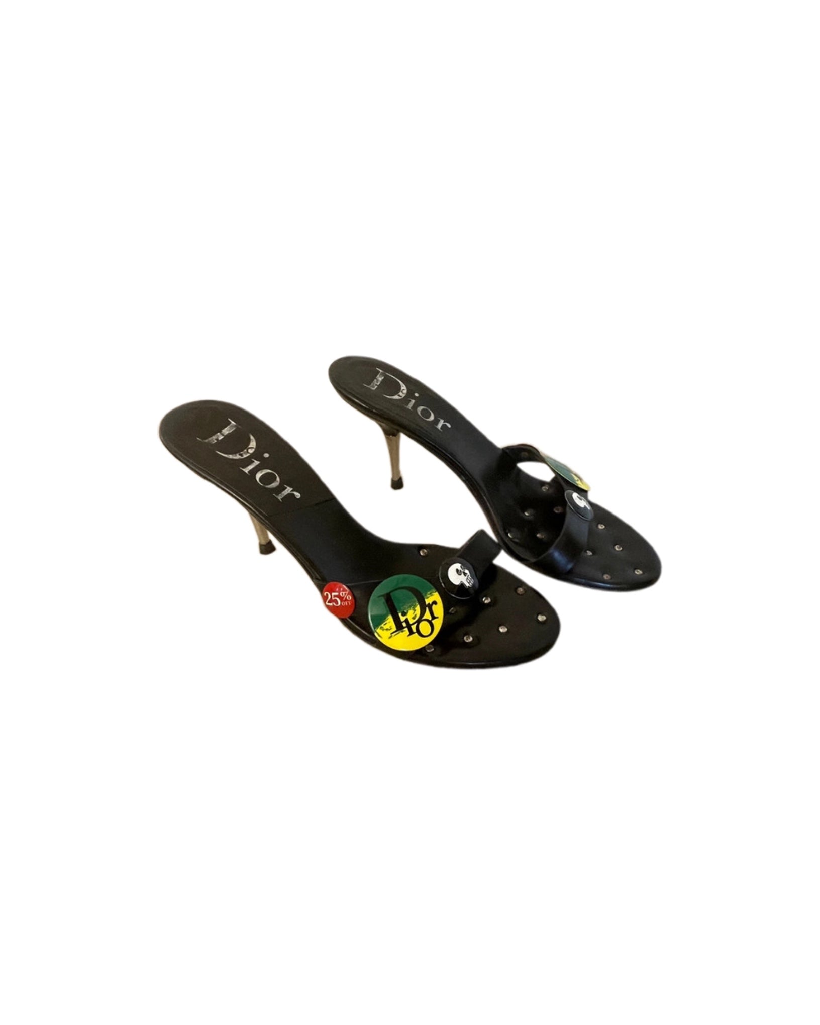 An iconic pair of mules from the S/S 2003 Fashion Victim collection. Crafted in soft leather with playful multicolored pin details and a 7 cm heel. Excellent vintage condition with light wear, heel pads freshly replaced.