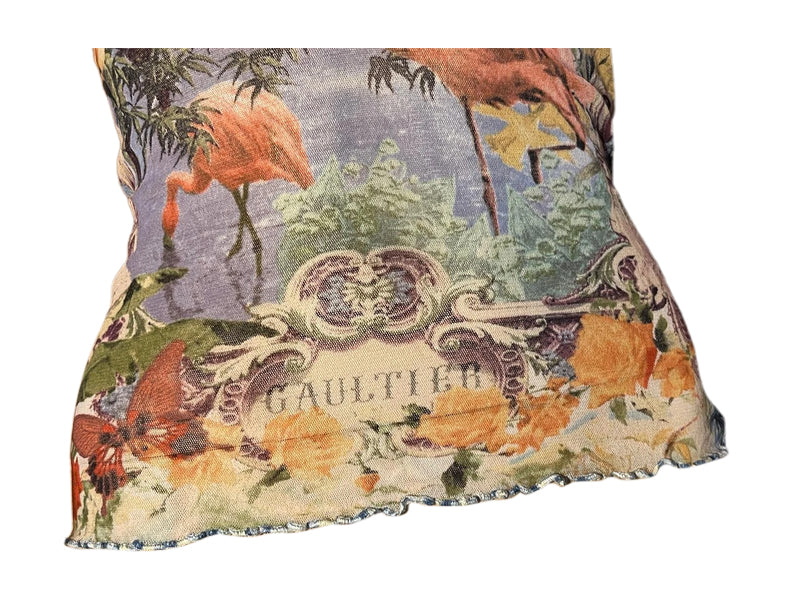 A Jean Paul Gaultier Tank top crafted from a flamingo-printed mesh fabric.